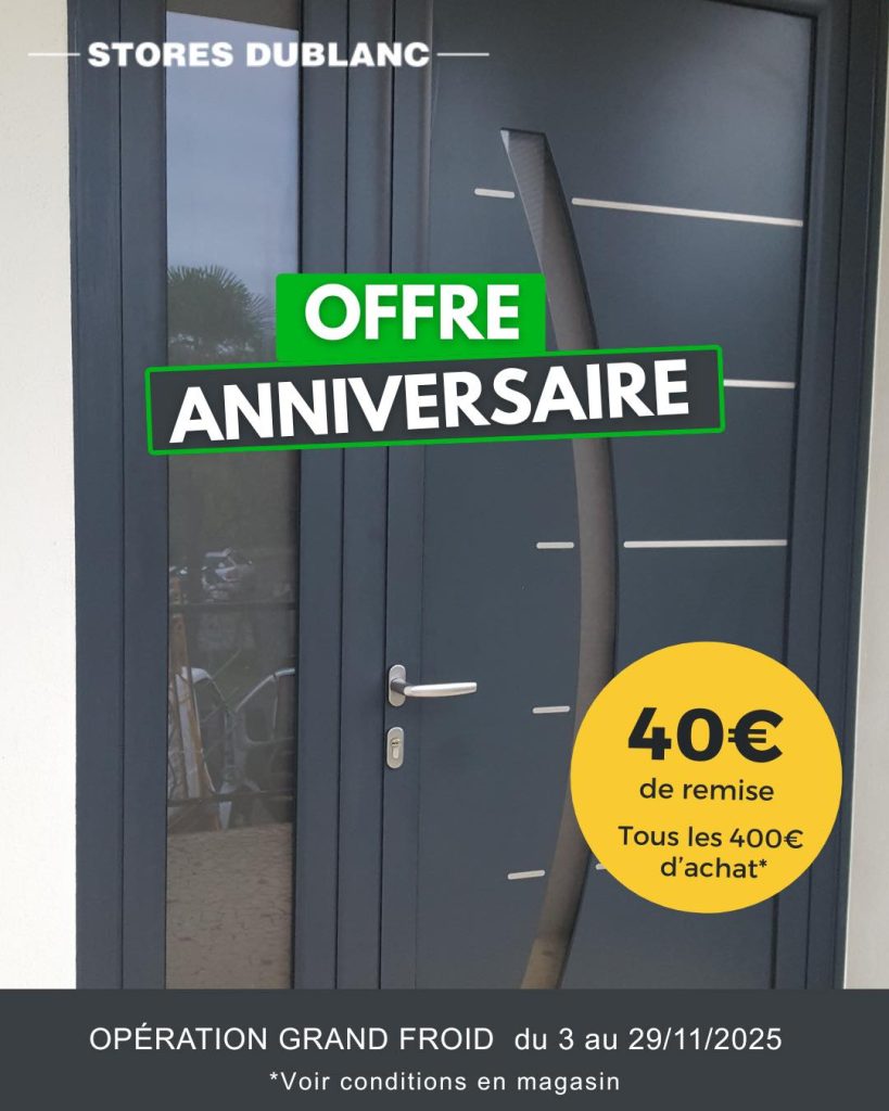 40 ans, ça se fête ! 40 € de remise tous les 400 € d’achat valable sur nos menuiseries.